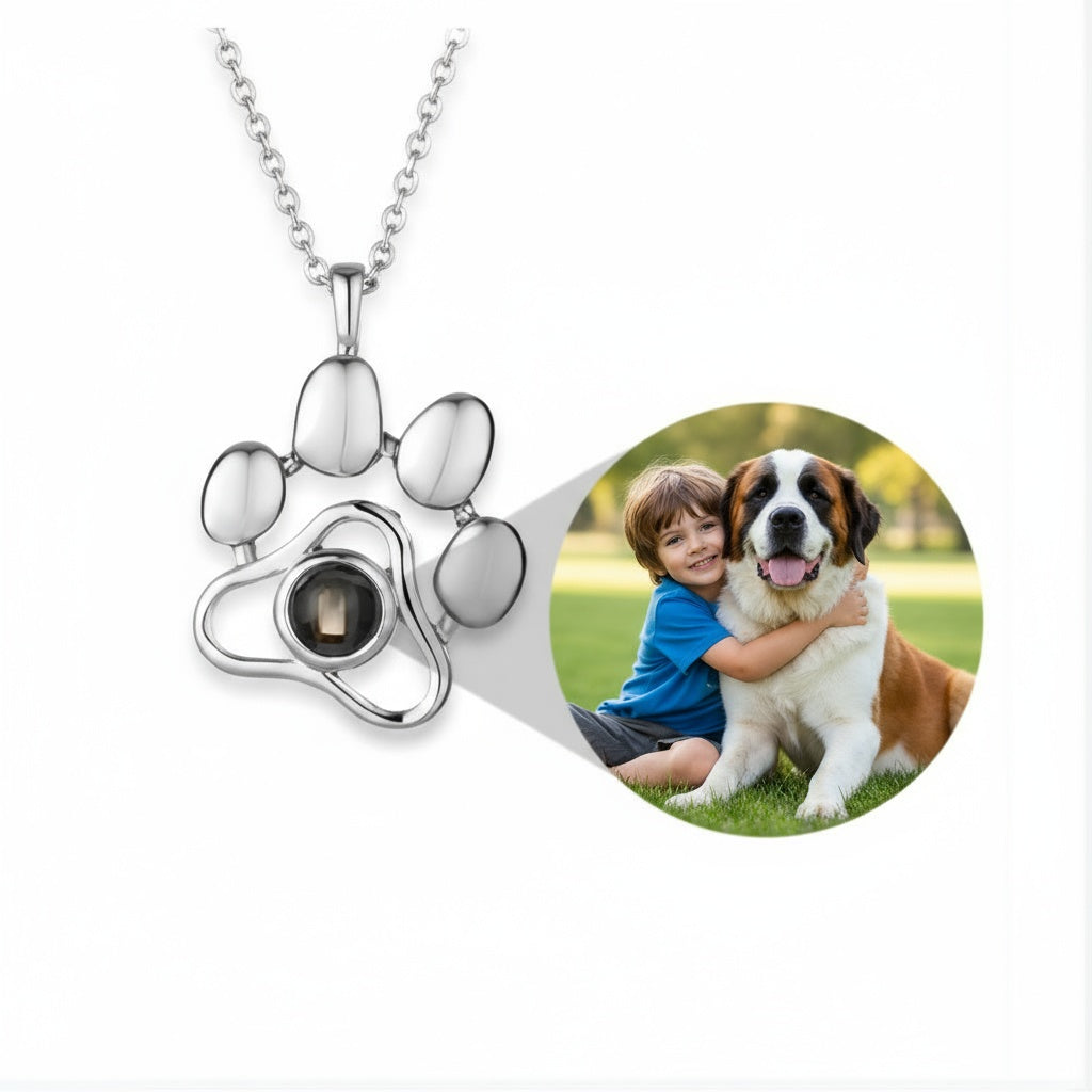 Celebrate the unbreakable bond with your beloved pet through our Eternal Pawprint Projection Necklace. This exquisite piece features a pendant that projects a heartwarming image of your pet, allowing you to carry their love and presence wherever you go.